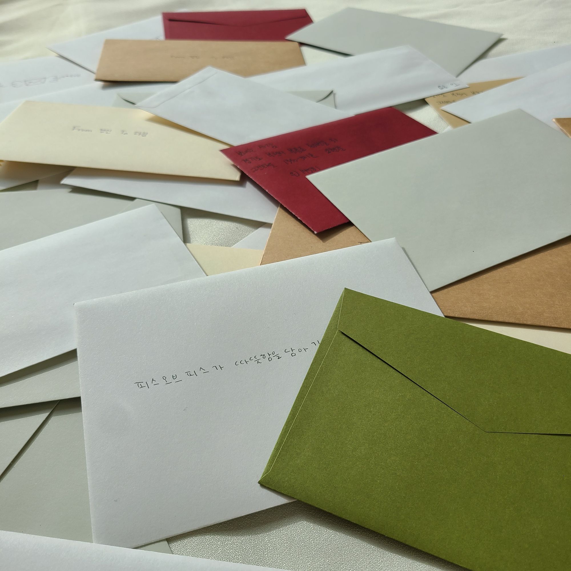 그렇게 시작된 피스오브피스의 세번째 조각은 "크리스마스엔 우리, 편지를 보낼까요?" 입니다. 우리는 친구들과 마음을 전하고 싶은 친구에게 함께 손편지를 써주며, 누군가가 항상 너를 응원하고 있다는 마음, 지금 당장 함께할 수는 없지만, 언젠간 우리가 함께 할 것이라는 약속을 하며 따뜻함을 나누고 진심을 전하고 싶었습니다.